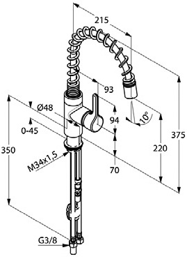 swiveling spout (220 degree), pull-out hand spray